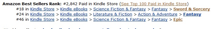 It hit #16 on the first list while I was typing. I’d love to get into the teens on the Epic Fantasy list, but I doubt I’d get very far. 5 of the top 10 are Game of Thrones and there’s a new season coming out in 10 days. Those books are going to be there for a while.