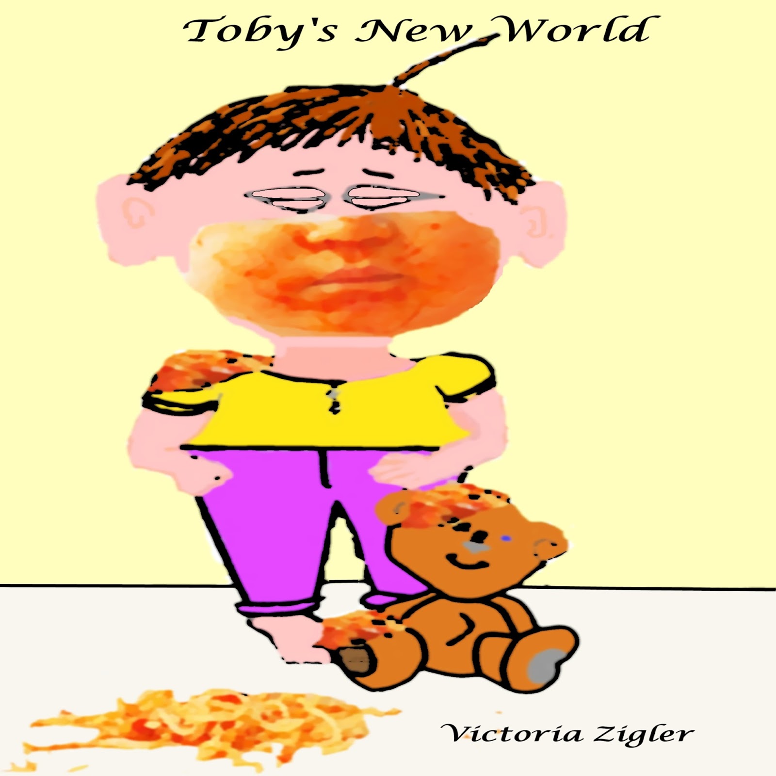 “What mess?” asked Toby, unable to see the food that had ended up all over his clothes, his bear, and just about everything else.