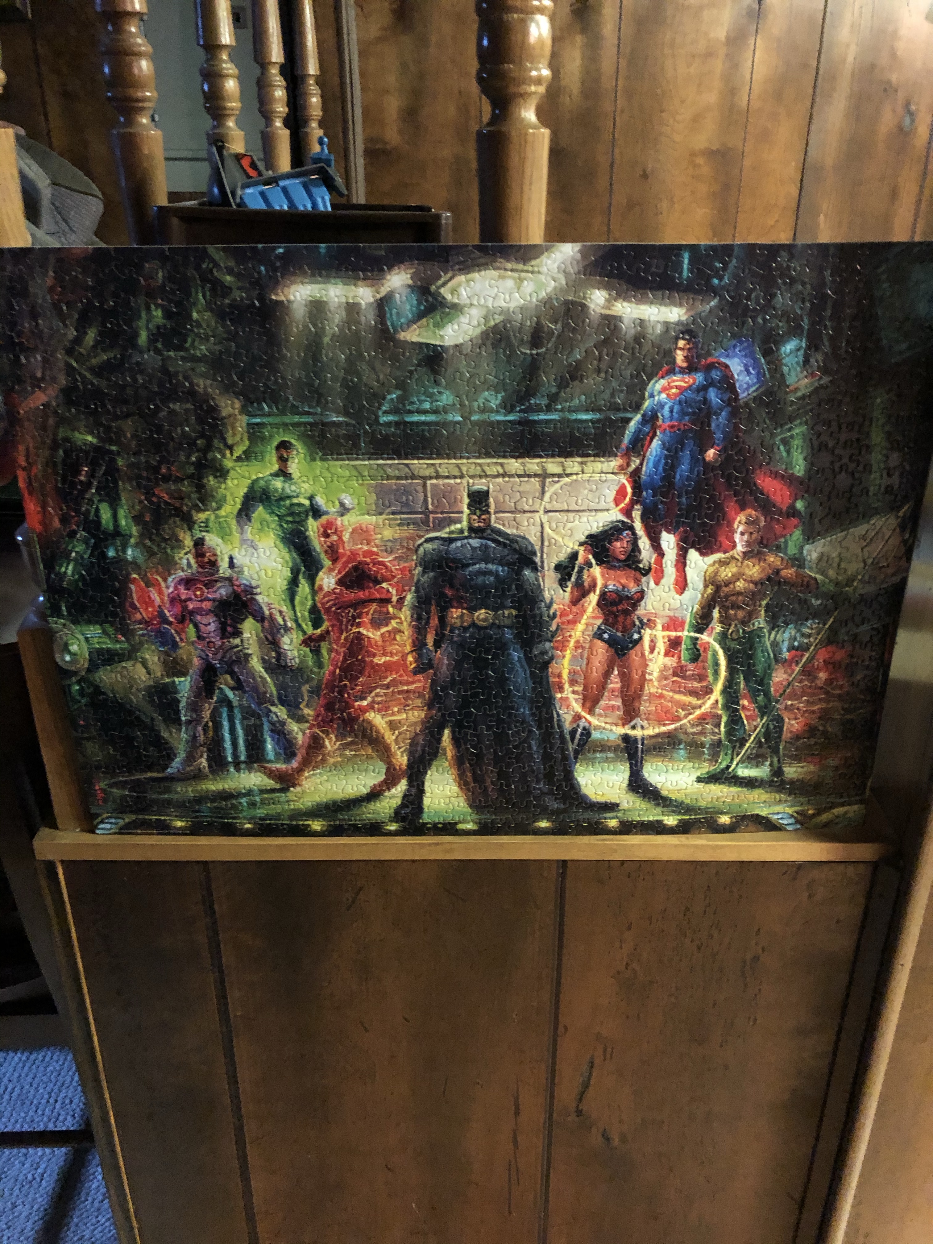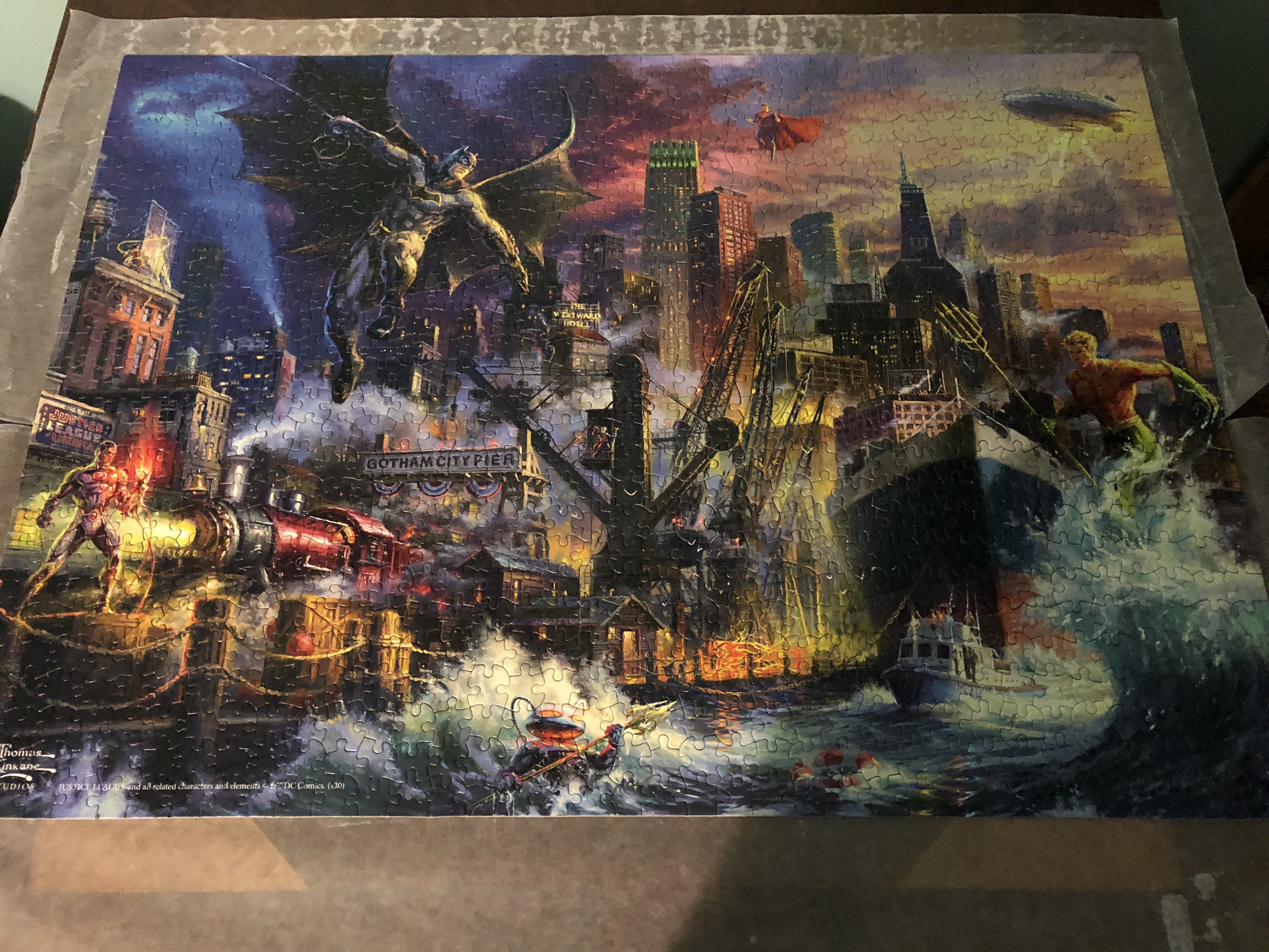 Last weekend, I finished the last puzzle of a set. I hope more are put out, but this is all they have now. These are DC Superheroes done by Thomas Kinkade Studios. They’re pretty challenging because you have a lot of similar colors in the background. Many times, I had to work by the direction of the brush strokes. Can’t wait to see if they make more. The first are ones I did last year, but I wanted to include them.