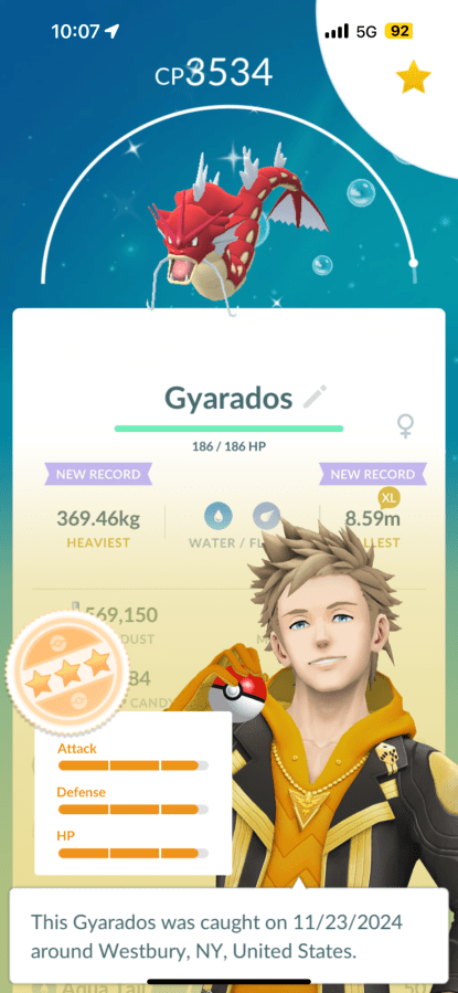 Rare shiny Gyarados (Usually blue)