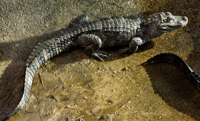 In contrast, the Chinese Alligator gets only 4-5 feet long. They are also critically endangered and live in a small area of the Yangtze basin. There are possibly less than 150 alive in the wild. The reason for this is habitat fragmentation and contamination of their food sources by pesticides and fertilizers. Unlike their larger relatives, they have blunter teeth to help them go for shellfish. They never attack humans due to their size, but will go for smaller mammals. Physically, the Chinese alligator’s snout tapers up instead of going straight like the American species. They also have bony plates on their eyelids and bellies that the bigger species lacks.
