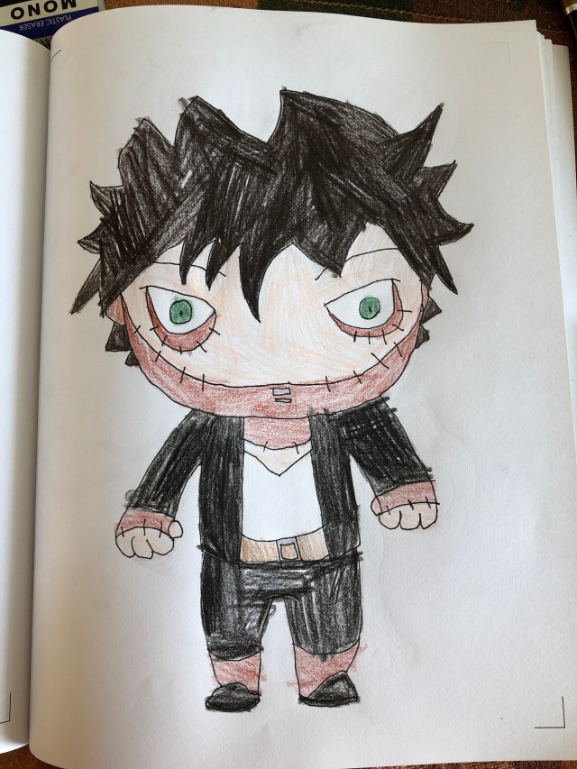 Fate carefully opens the present and waits for a small explosion or a muffled gunshot. What he finds is a stuffed animal that is on the very edge of his earliest memory. It is a brown dog with big, floppy ears and a plastic nose that is covered with little teeth marks. The right ear is barely kept on with some gold-colored thread. The underside of the toy has a big, stitched up scar down the middle of it. This children’s toy has definitely seen better days.