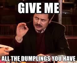 (Inspired by a dumpling tour of Chinatown and a previous conversation about how every culture seems to have its own dumpling. Yes, this is going to be the topic of the week because I think we can all use some fun and silliness.)